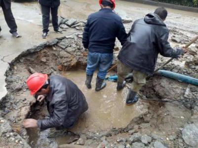 11月8日早上7點(diǎn),宜城天河公司再次接到電話:“瑪麗醫(yī)院門口爆管了!大面積漏水!”。接到電話后,公司立即組織搶修人員趕往瑪麗醫(yī)院進(jìn)行搶修。