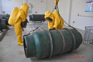 在總指揮趙建同志的哨響聲下,應(yīng)急救援演練活動正式開始。氯氣泄漏事故模擬現(xiàn)場煙霧彌漫,漏氯泄漏報警儀發(fā)出尖銳的報警信號,現(xiàn)場指揮人員立即發(fā)出指令,啟動緊急處置預(yù)案。警戒疏散小組、搶修小組、消防小組各組成員第一時間趕到事故現(xiàn)場,搶修人員迅速穿好防化服進(jìn)入氯庫,將氯瓶的泄漏點封住,放置于堿池中,防止氯氣繼續(xù)泄漏造成更大的危險。與此同時,警戒疏散小組設(shè)立崗哨,拉起警戒線,負(fù)責(zé)氯瓶間工作人員安全撤離。消防小組啟用消防水管噴灑大量水,稀釋空氣中的氯氣,防止空氣中的氯氣含量超標(biāo)發(fā)生二次傷害。此次演練行動迅速,全程用時16分鐘,有效處理了氯氣泄漏,取得了預(yù)期效果。
